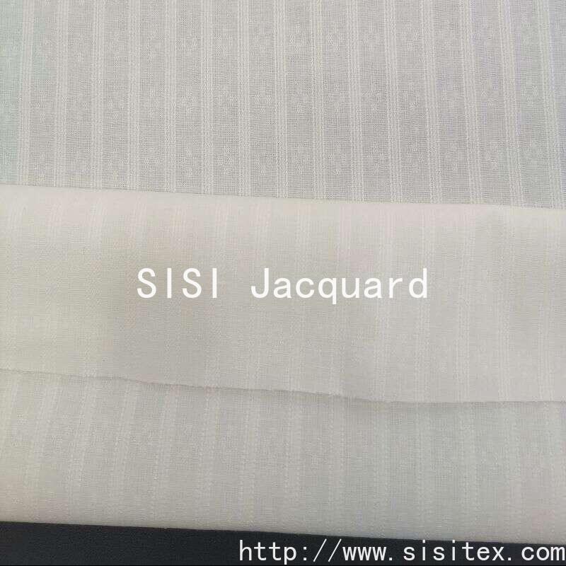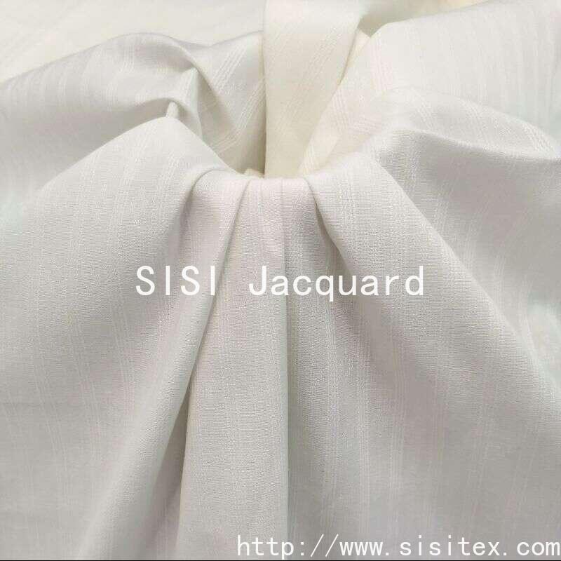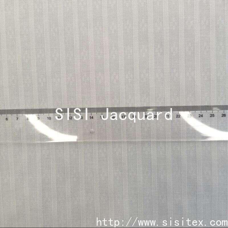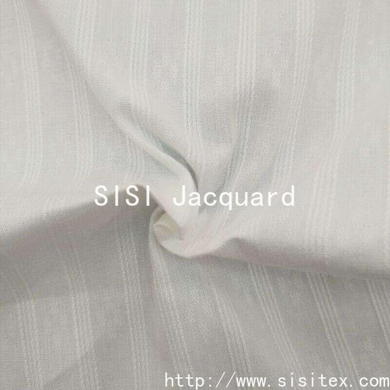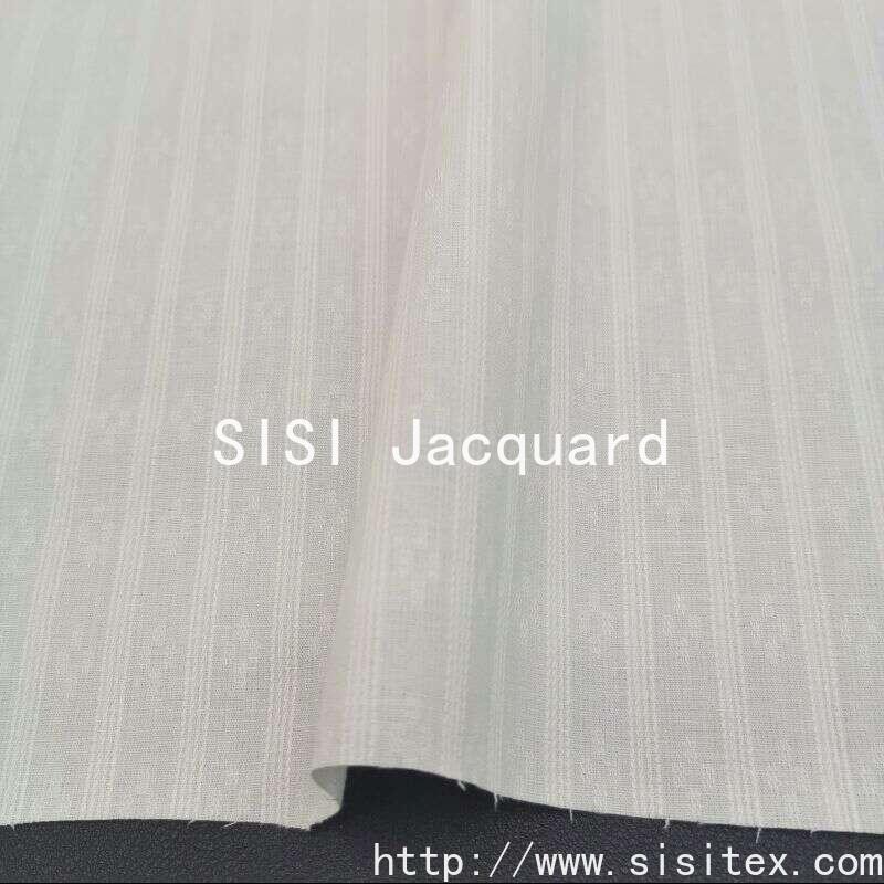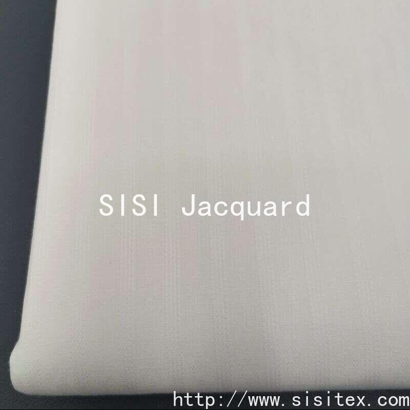 This "thread-by-thread jacquard" 100% cotton stretch striped jacquard fabric is made from high-quality cotton yarn, with an appropriate amount of elastic fibers incorporated (the composition should be 97% C, 3% SP, which means 97% cotton and 3% spandex). Through the innovative yarn combination of "40*40 + 40D" and the 104*66 warp and weft densities, it is precisely woven. The width is 138CM, the weight is 138g/㎡, and the fabric structure is jacquard. The fabric presents clear and neat geometric stripe patterns, and due to the addition of spandex, it has excellent four-way stretch. The thick and stiff texture combines perfectly with the comfortable elasticity, allowing the fabric to maintain a three-dimensional texture and excellent shape while providing excellent freedom of movement and fit.