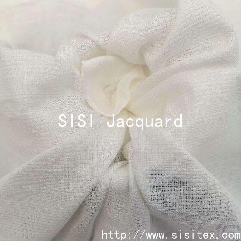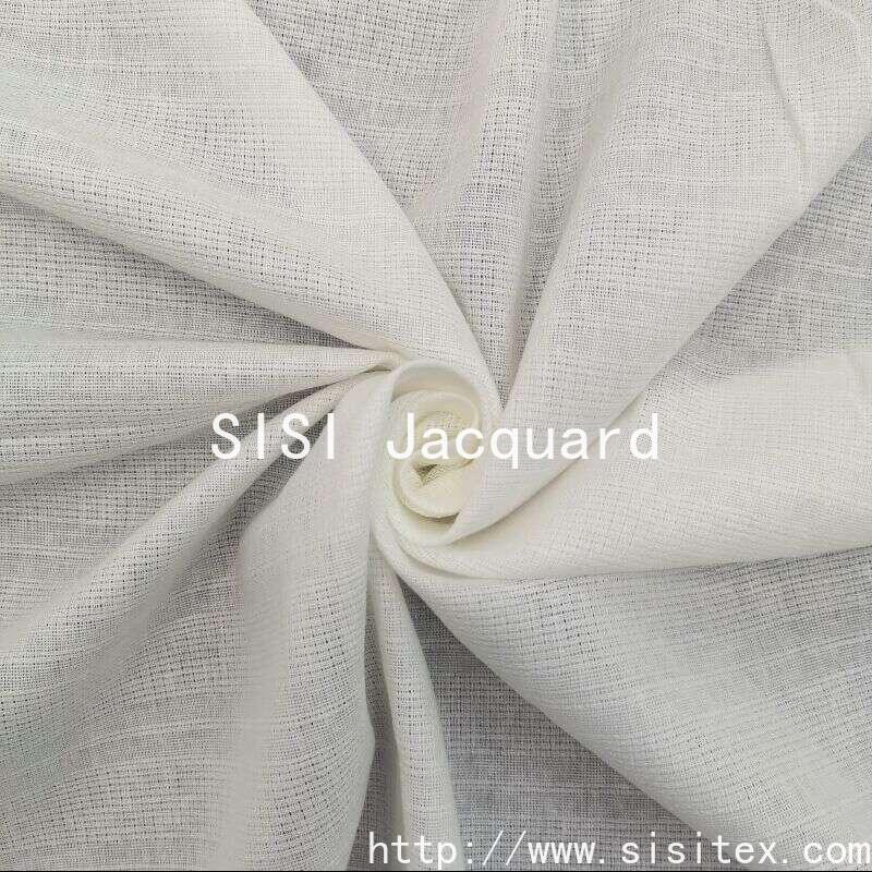 This "thread-by-thread jacquard" all-cotton plain weave perforated jacquard fabric is made from 100% high-quality cotton yarn. It is meticulously woven with a yarn count of 21*21 and a warp and weft density of 64*55. The width is 145cm and the weight is 114g/㎡. The fabric is crafted using the jacquard technique, creating rhythmic horizontal stripe patterns. Intricately, it incorporates regular perforation designs. The horizontal stripes provide a visual sense of extension and softness, while the staggered perforations enhance the fabric's breathability and lightness of texture. The pure cotton material ensures natural skin-friendliness and breathability. The overall style is simple and modern, with clear lines, and it combines a crisp texture with a comfortable experience.