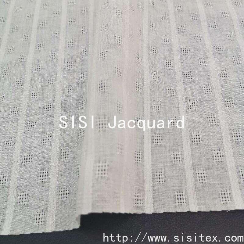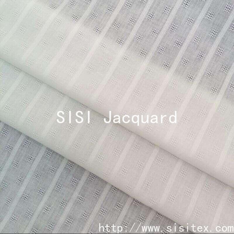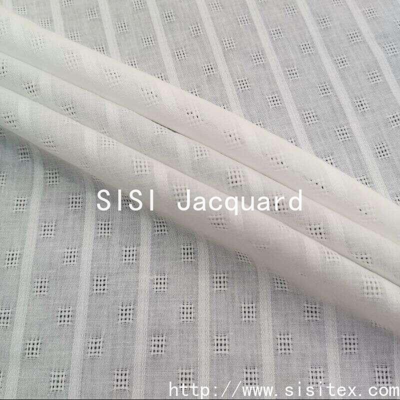 This "thread-by-thread jacquard" all-cotton striped mesh jacquard fabric is made of 100% high-quality cotton yarn. It is precisely woven with a classic 40*40 yarn count and a 93*64 warp and weft density. The width is 138-140 cm, the weight is 95g/㎡, and the fabric structure is jacquard. The design of the fabric ingeniously combines clear vertical stripes and regular square mesh patterns, forming geometric patterns with rhythm and order. The stripes and the mesh interplay with each other, creating rich light and shadow layers when light penetrates. The pure cotton material provides a comfortable and breathable experience, with a soft and firm texture. The overall style is simple and modern, clean and neat, and combines visual beauty with practical functionality.