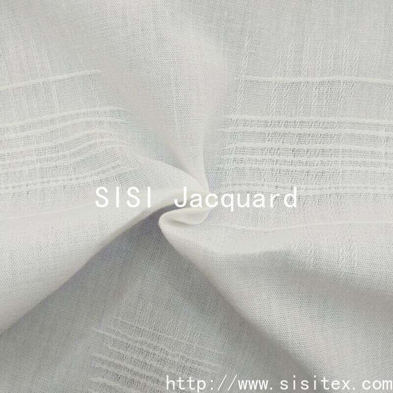 This "threaded jacquard" all-cotton thick-stitch jacquard fabric is made from 100% pure cotton. It is woven using a unique 40*21 warp and 115*63 weft yarn count and a 148cm wide fabric. The fabric features a classic gauze weave and combines a striking geometric jacquard technique, resulting in bold and clear line textures. The fabric has a smooth texture with a certain amount of airiness, and the cotton gauze structure provides a natural micro-permeability effect and good breathability. The geometric patterns in the thick lines are arranged rhythmically and modernly, while maintaining the natural skin-friendly characteristics of pure cotton and injecting distinct visual personality and Japanese-Korean style fashion elements.