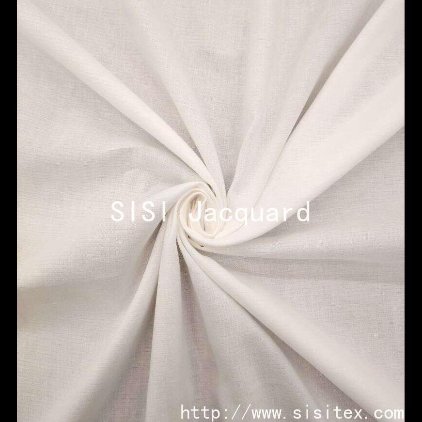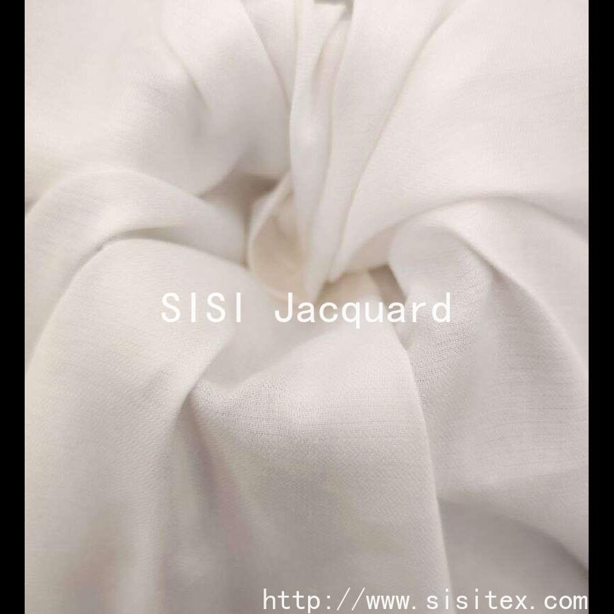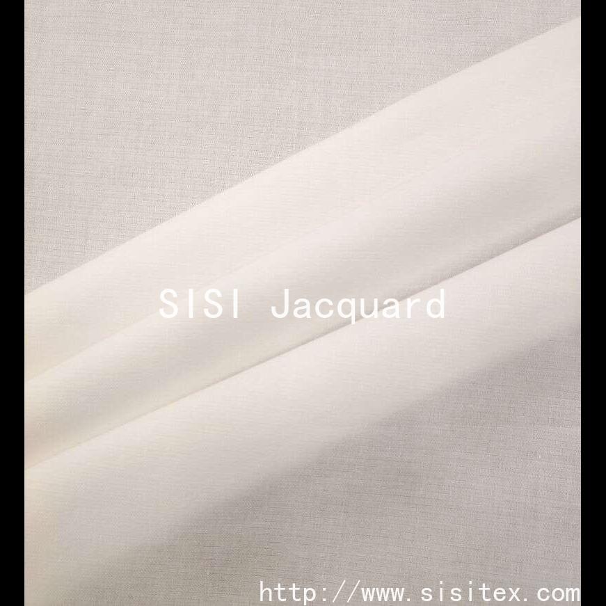 This "threaded jacquard" cotton-spun plain weave small jacquard fabric is made from a high-quality blend of 80% cotton and 20% rayon , with a C40 + R40 C40 yarn combination and a precise density of 11574. The width is 145 cm and the weight is 98 g/m². It is woven based on a jacquard structure, creating delicate horizontal textures (weaves) and exquisite small jacquard patterns. The fabric combines the natural stiffness of cotton and the smooth drape of rayon, giving a rich and fine feel. Its horizontal texture is smooth and natural, and the small jacquard patterns are faintly visible, jointly creating a subtle, elegant and layered visual effect. It is a multi-functional fabric with both comfort and design sense.