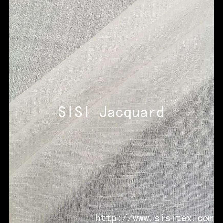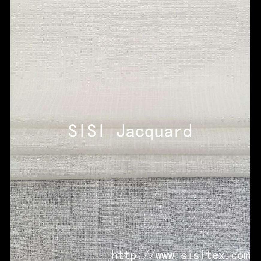 This "threaded jacquard" cotton-spun bamboo-strip yarn fabric is meticulously woven by Shaoxing Xixi Textile Co., Ltd. It features an innovative yarn combination: based on 73% cotton and 27% human cotton, through the interweaving of "40% cotton + 40% cotton + 40% bamboo-strip yarn" and "40% bamboo-strip yarn + 40% cotton", a unique double-sided asymmetrical structure is formed. The plain weave is combined with abstract jacquard patterns, and the yarn alternates in the warp and weft directions to create a natural "jelly stick strip" texture. The fabric width is 140cm and the weight is 85g/㎡. It has a soft feel, combining the stiffness of cotton with the drape of human cotton. The bamboo-strip texture on the surface and the abstract jacquard create a visual hierarchy of roughness and delicacy, making it a distinctive fabric full of craftsmanship charm and design sense.