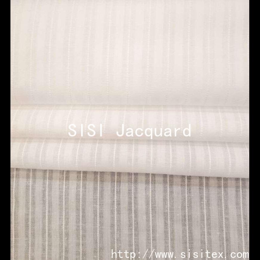 This all-cotton yarn vertical jacquard fabric is made of 100% high-quality cotton. It combines traditional jacquard techniques with modern vertical stripe design, presenting a delicate three-dimensional texture and exquisite luster. The interwoven vertical jacquard patterns on the fabric surface are distinct in layers. The yarn weaving process endows it with the characteristics of lightness and breathability, retaining the natural skin-friendly feel of cotton while adding a unique high-end texture.