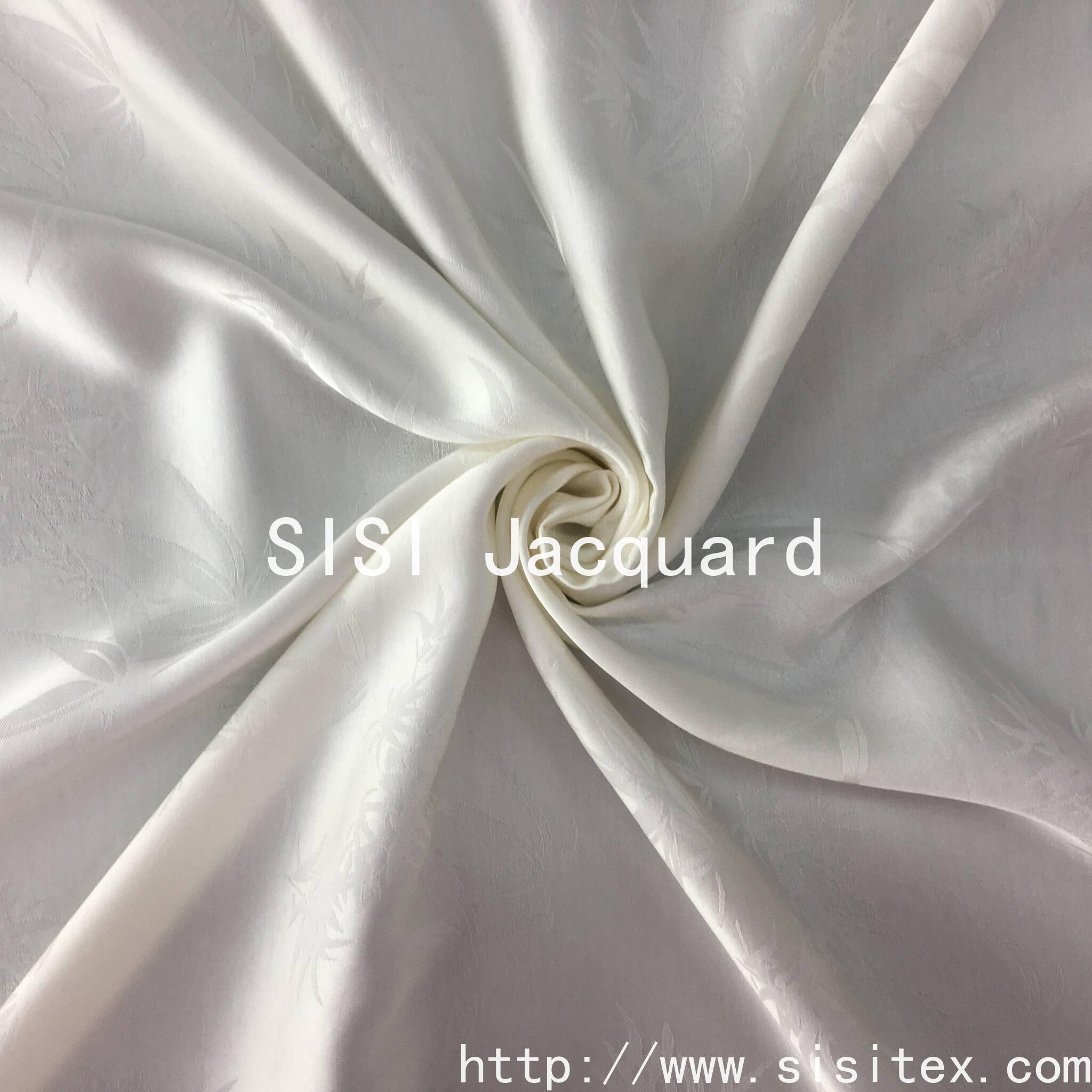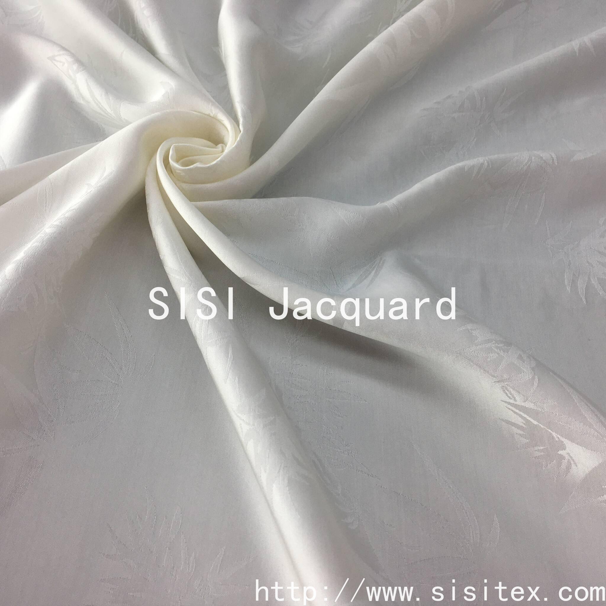 This fabric is made by blending 60% rayon (regenerated cellulose fiber) and 40% rayon (artificial cotton), and combines traditional jacquard techniques to create a faint bamboo leaf pattern. The texture is fine and three-dimensional, the touch is smooth and skin-friendly, and it combines natural aesthetics with practical functions. It is an ideal choice for creating high-end clothing and home products.