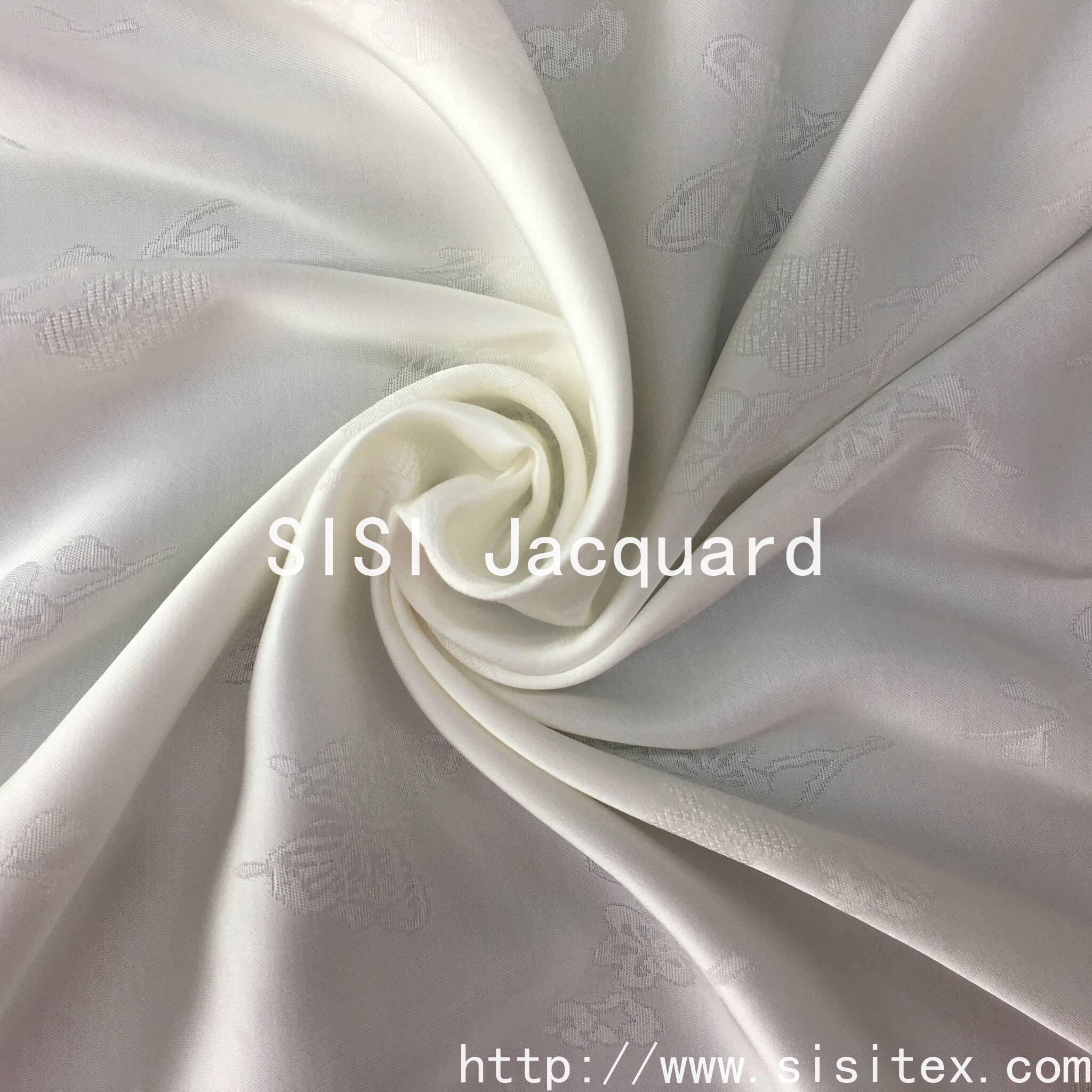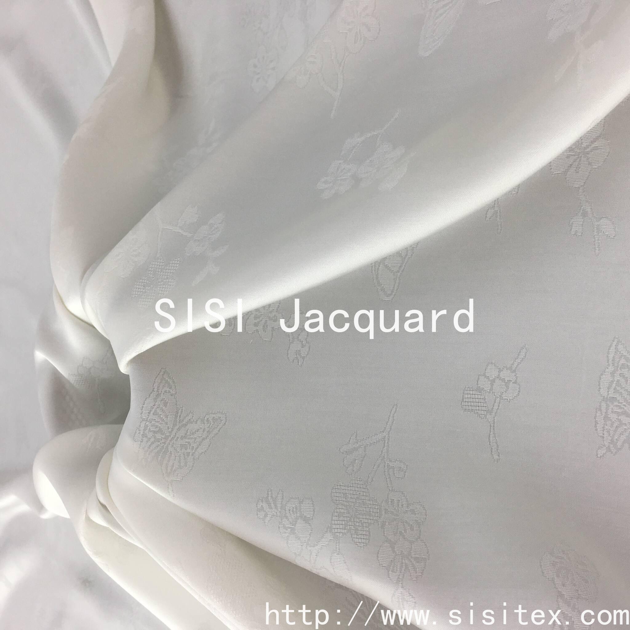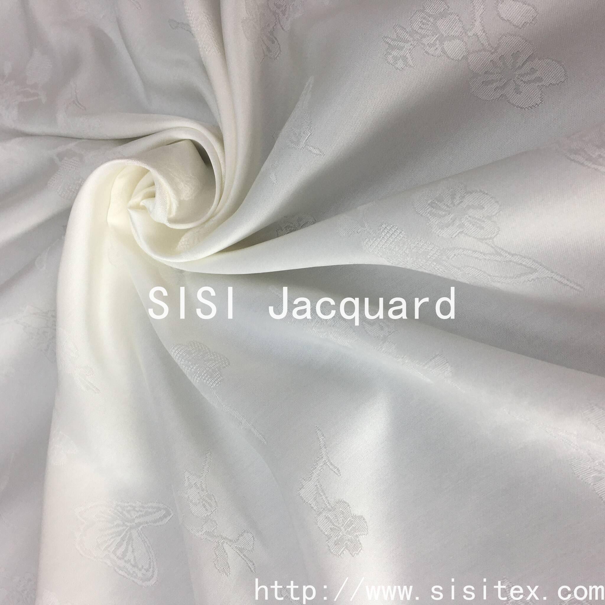 Derived from the "silk jacquard" romantic ingenuity, this 40% rayon cotton +60% rayon blended pure white butterfly jacquard fabric, inspired by smart flowers and fluttering butterflies, through the precision jacquard process interwoven layers of three-dimensional petals and wings texture. Rayon blend gives the fabric a silky luster and soft touch, while rayon component enhances breathability and skin intimacy. Pure white base is blended with butterfly flower pattern, supplemented by a solid color background to highlight jacquard-patterned details, conveying the advanced texture of "natural life" and "elegant aesthetics". It is suitable for new Chinese dress, light luxury home and high-end clothing customization, interpreting the romantic and restrained Oriental artistic conception.