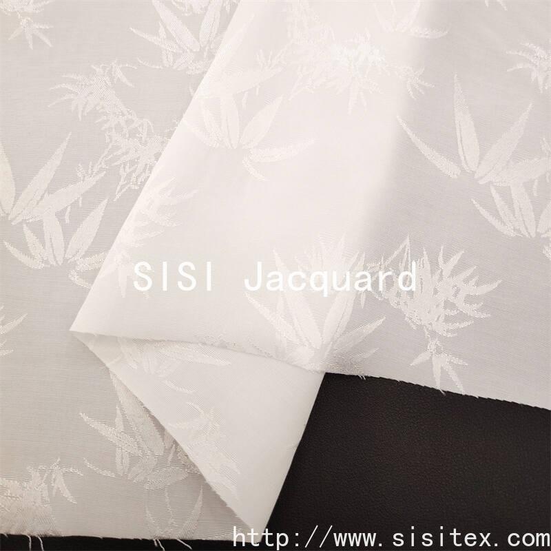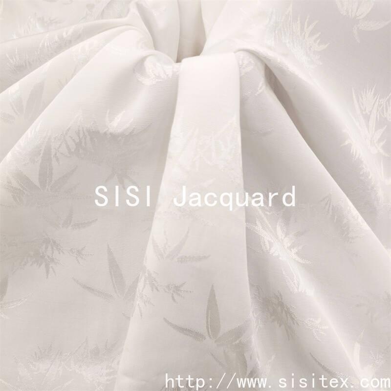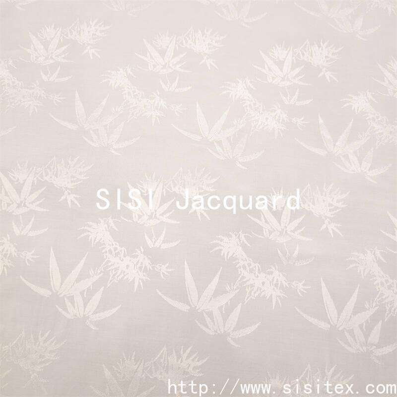 SIS Rayon Rayon cotton bamboo leaf jacquard fabric, with 44% rayon cotton and 56% rayon silk scientific ratio, combined with traditional jacquard technology and Oriental aesthetic inspiration, weaving fresh and elegant bamboo leaf texture. The fabric integrates the lustrous luster of rayon and the drapiness of rayon, as well as the moisture absorption characteristics of rayon, and feels soft and delicate, light and elegant. The bamboo jacquard pattern is scattered and the details are three-dimensional, which not only conveys the elegance and integrity of bamboo culture, but also gives the smart atmosphere of modern fashion to the fabric.