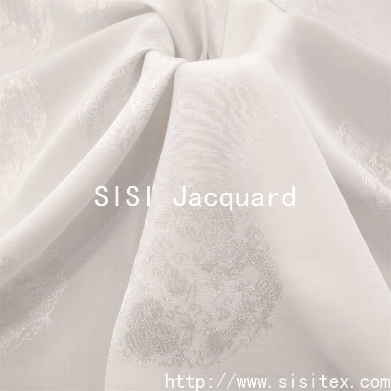 SIS Rayon rayon cotton dragon jacquard fabric, with 44% rayon cotton and 56% rayon silk scientific blend, combining traditional jacquard technology and modern design, to create a classic dragon pattern. The texture of the fabric is soft and drapy, and the luster is as smooth as silk. At the same time, it has the moisture absorption characteristics of rayon, and the perfect balance of luxury and comfort. The texture of dragon jacquard is clear and three-dimensional, and the details are exquisite, giving the fabric the noble temperament of Oriental aesthetics and modern fashion expression.