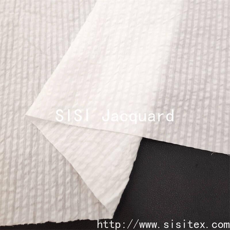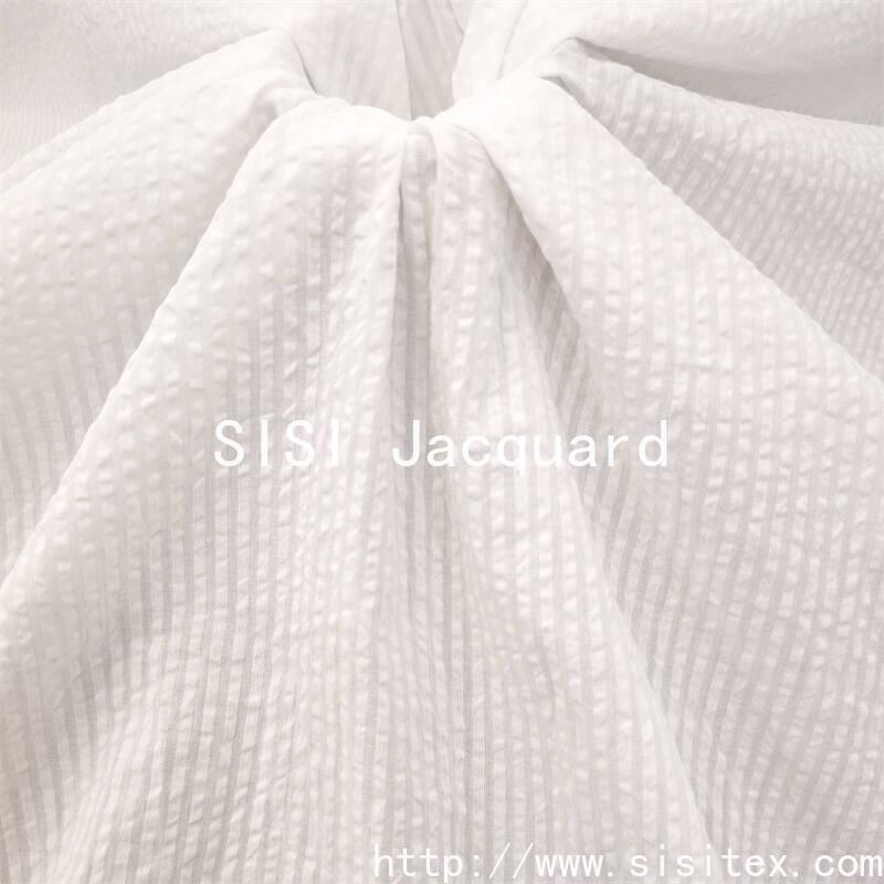 This spring and summer bubble strip pleated fabric is created by silk silk Textile Co., LTD., using a unique three-dimensional weaving process, the classic bubble strip texture and natural folds are cleverly integrated, giving the fabric a sense of agile and light breathing. 100% cotton natural skin-friendly, soft and breathable, excellent moisture absorption and quick drying performance, perfect for the refreshing needs of spring and summer. The concave and convex texture of the surface presents delicate changes of light and shadow under the light, which not only retains the simple warmth of cotton, but also adds the artistic tension of modern design.