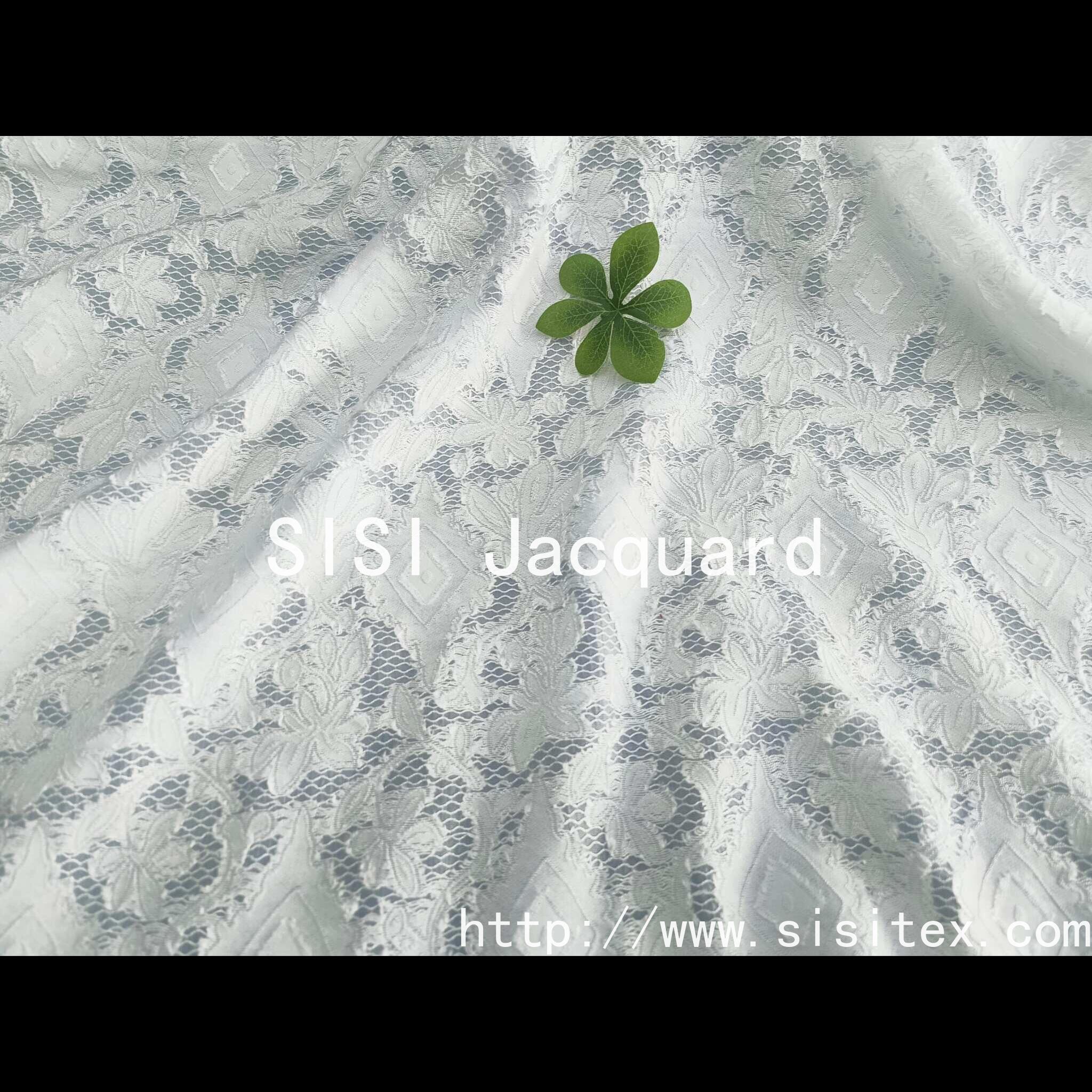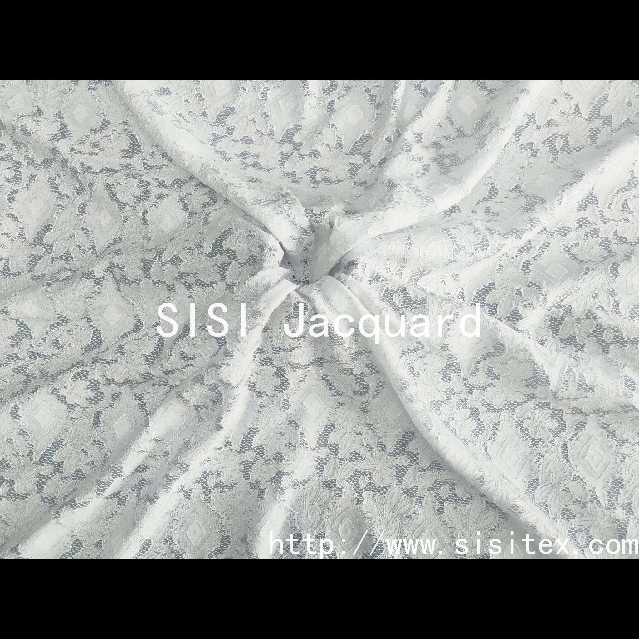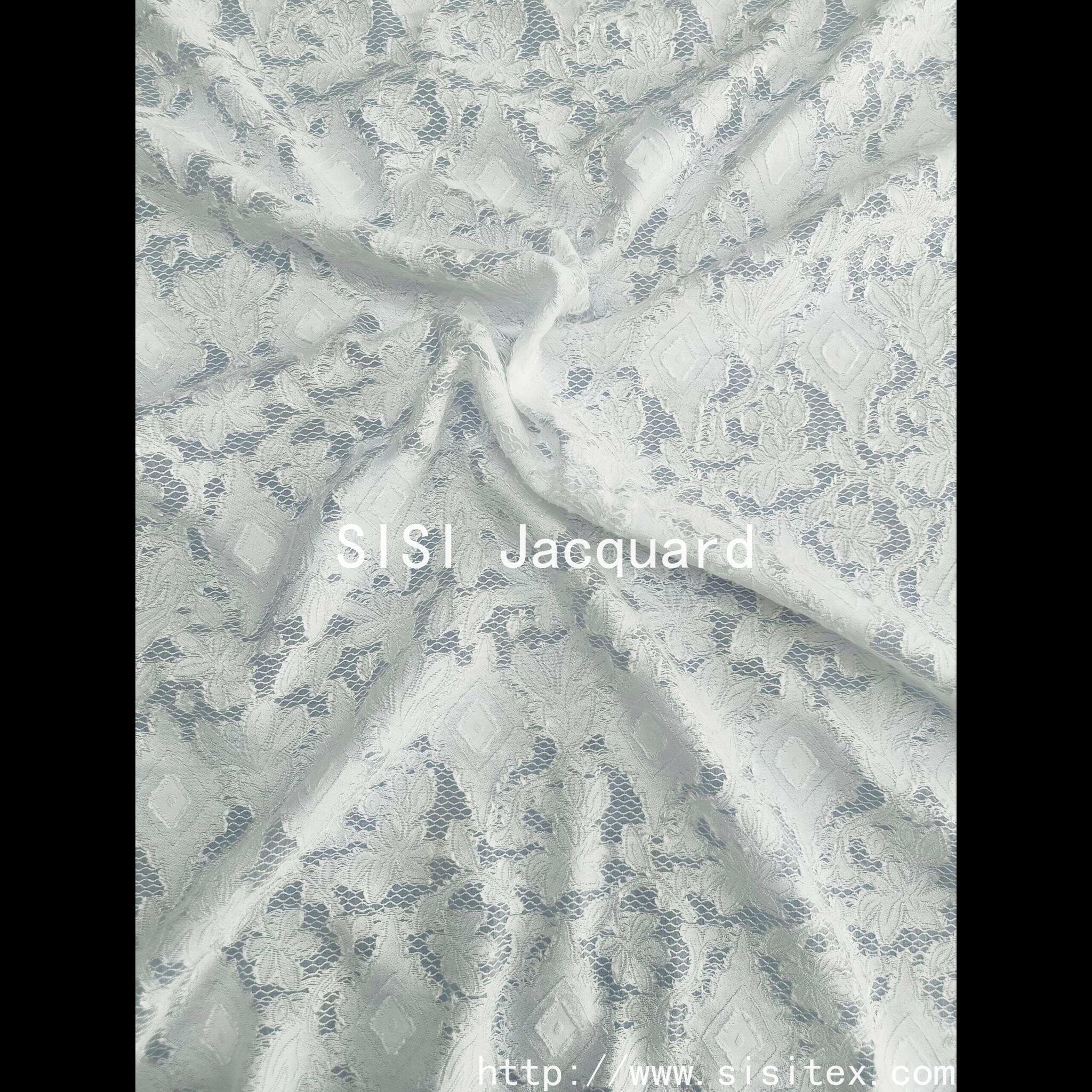 The fabric uses a blend process of polynylon and viscose fiber, combined with exquisite jacquard technology, to create a delicate texture of translucent imitation lace. The surface of the fabric is convex and three-dimensional jacquard lines, which reproduce the exquisite and romantic classic lace elements, while taking into account the characteristics of light and breathable. The slightly transparent design gives it a hazy beauty, soft touch, light and smooth, is a practical and artistic sense of high-end fabric choice.