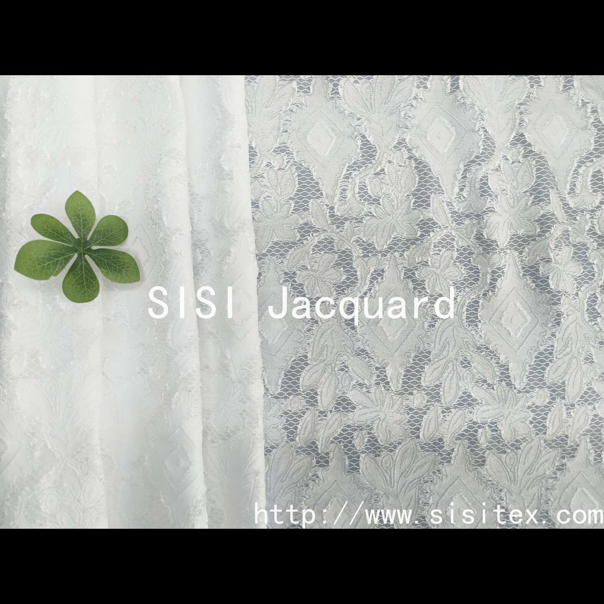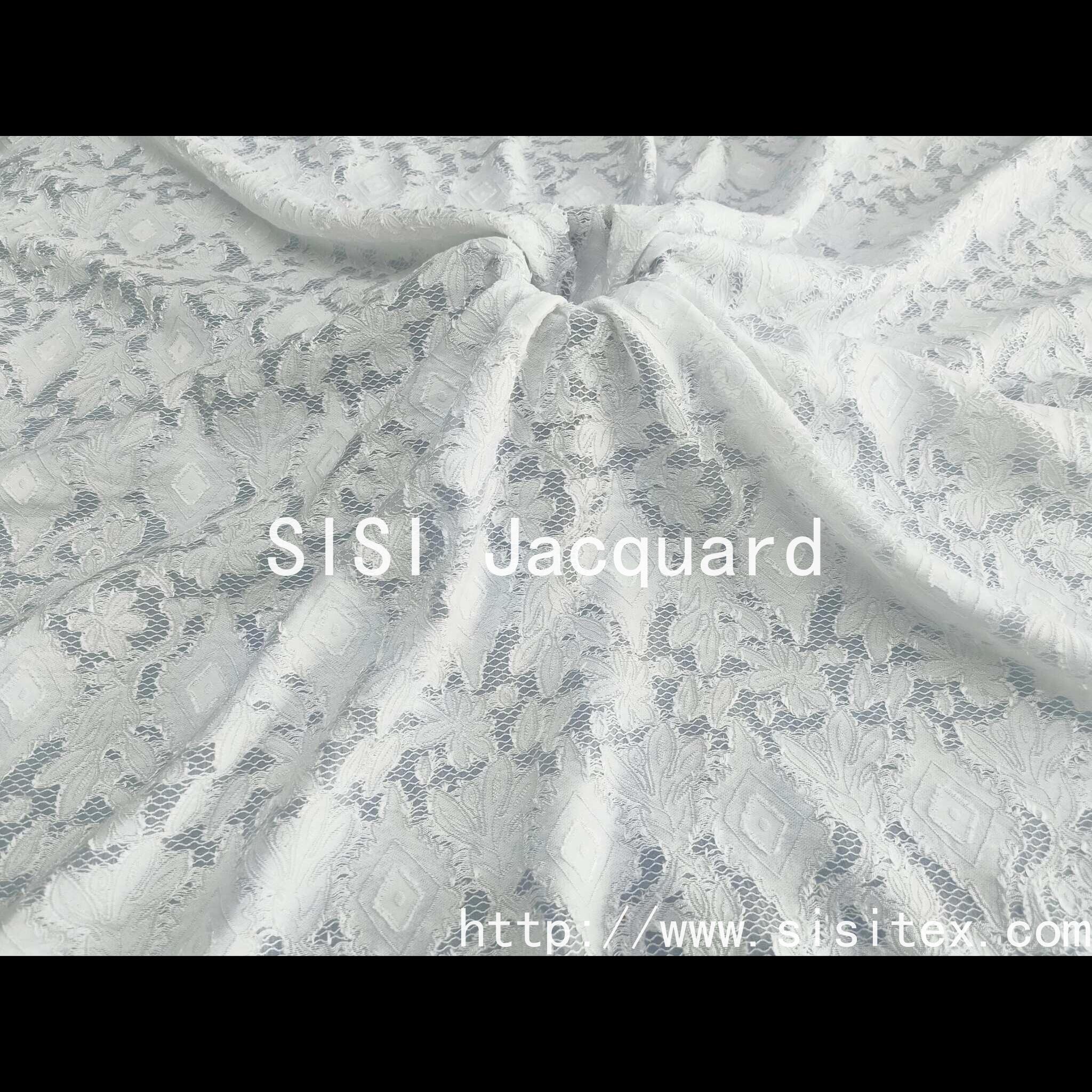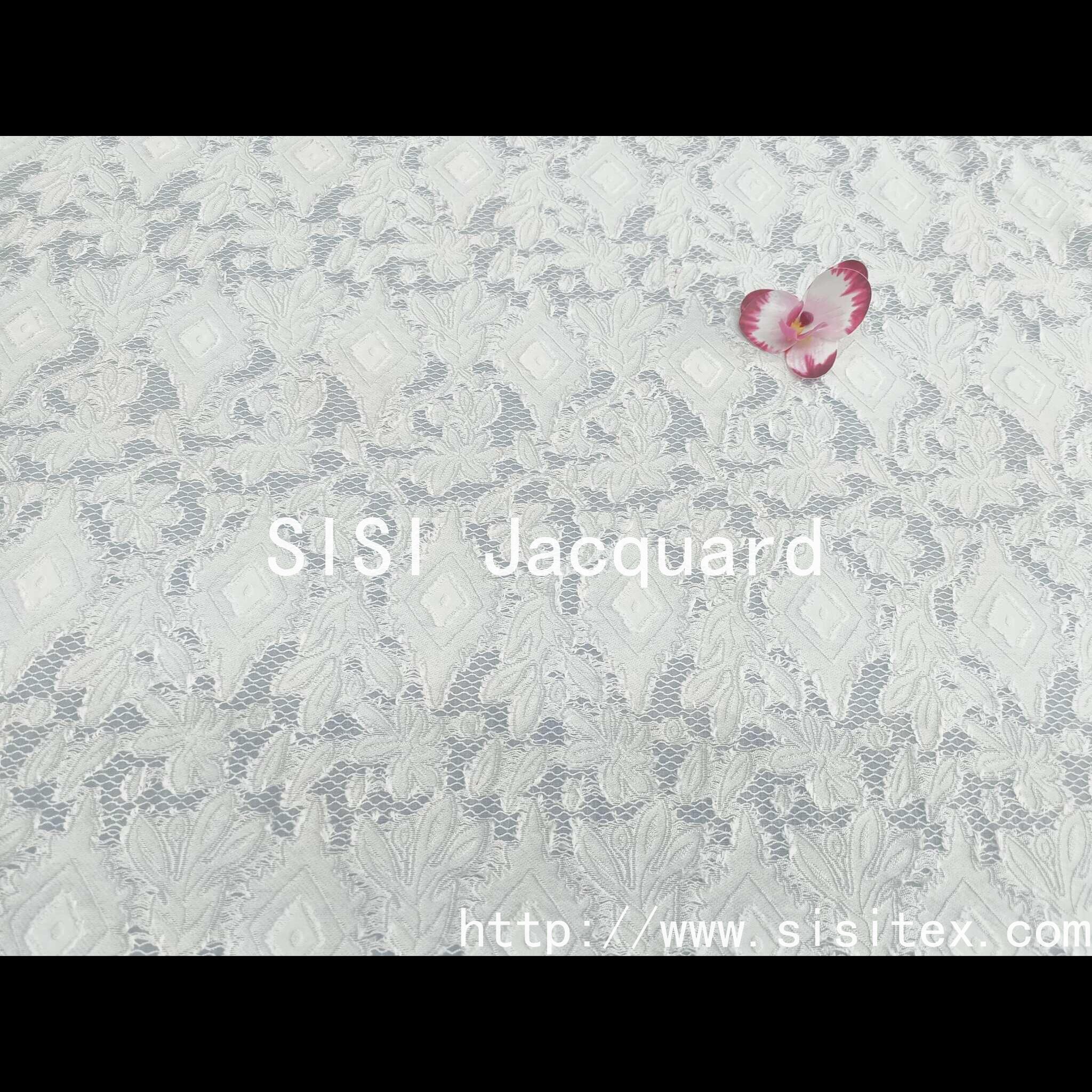 The fabric uses a blend process of polynylon and viscose fiber, combined with exquisite jacquard technology, to create a delicate texture of translucent imitation lace. The surface of the fabric is convex and three-dimensional jacquard lines, which reproduce the exquisite and romantic classic lace elements, while taking into account the characteristics of light and breathable. The slightly transparent design gives it a hazy beauty, soft touch, light and smooth, is a practical and artistic sense of high-end fabric choice.