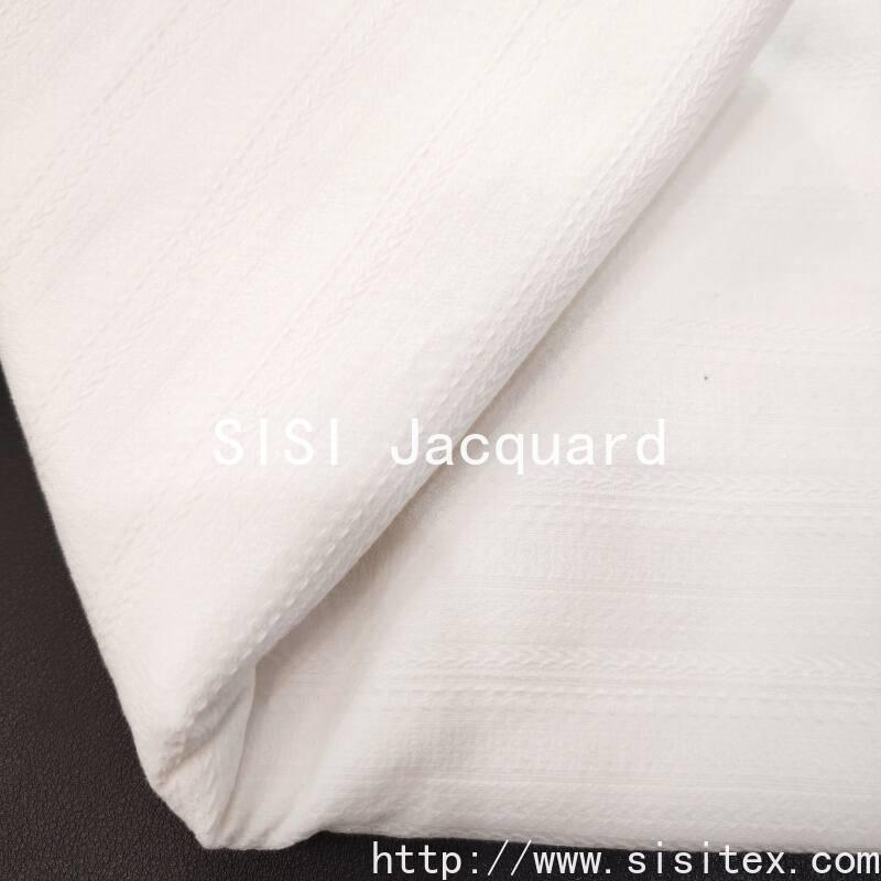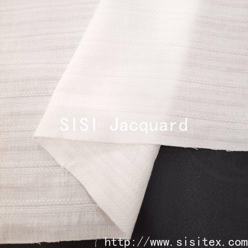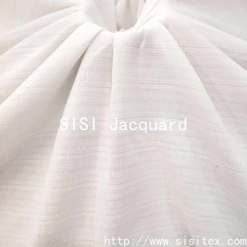 Cotton viscose blend material, the integration of striated muscle and braid jacquard technology, to create a layered three-dimensional texture. The fabric feels soft and delicate, with both the breathability of cotton and the luster of viscose fiber, suitable for the pursuit of delicate details and practical design scenes.