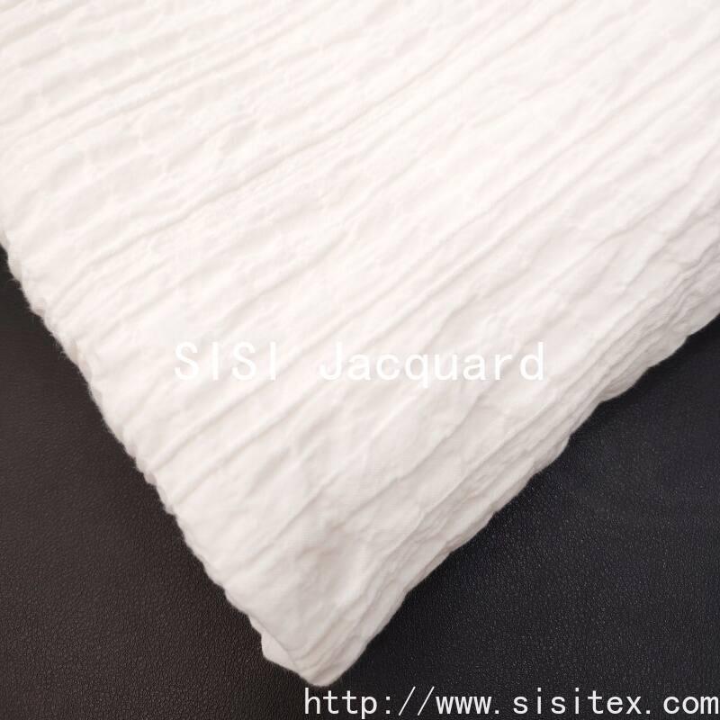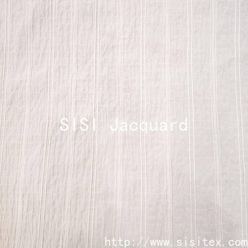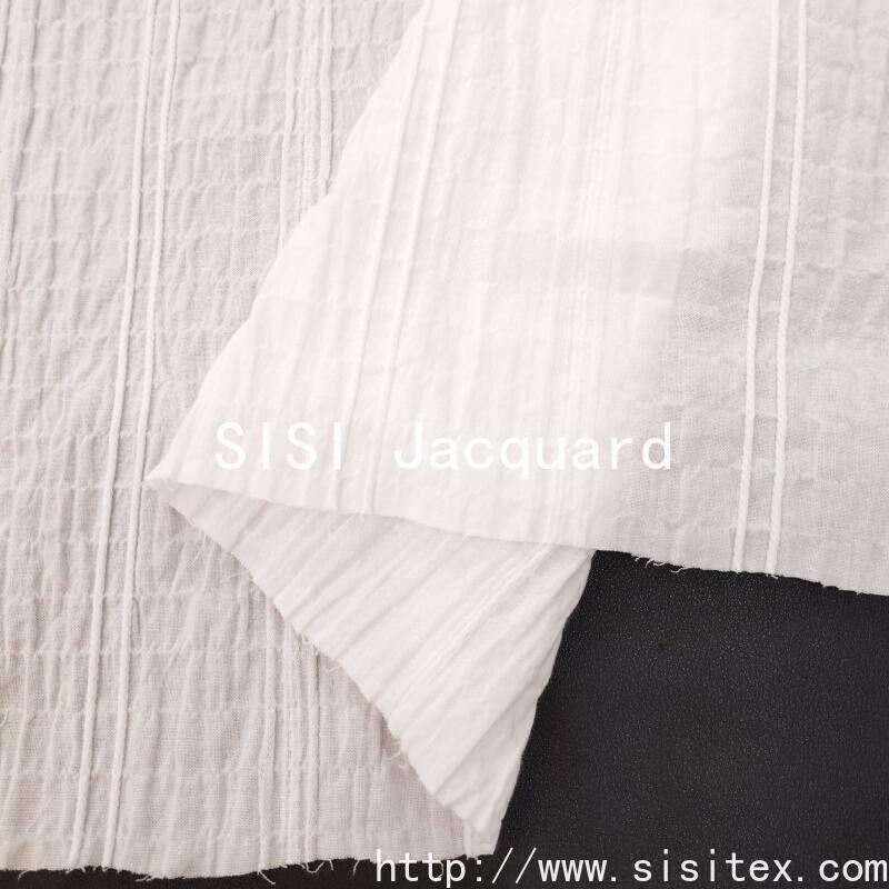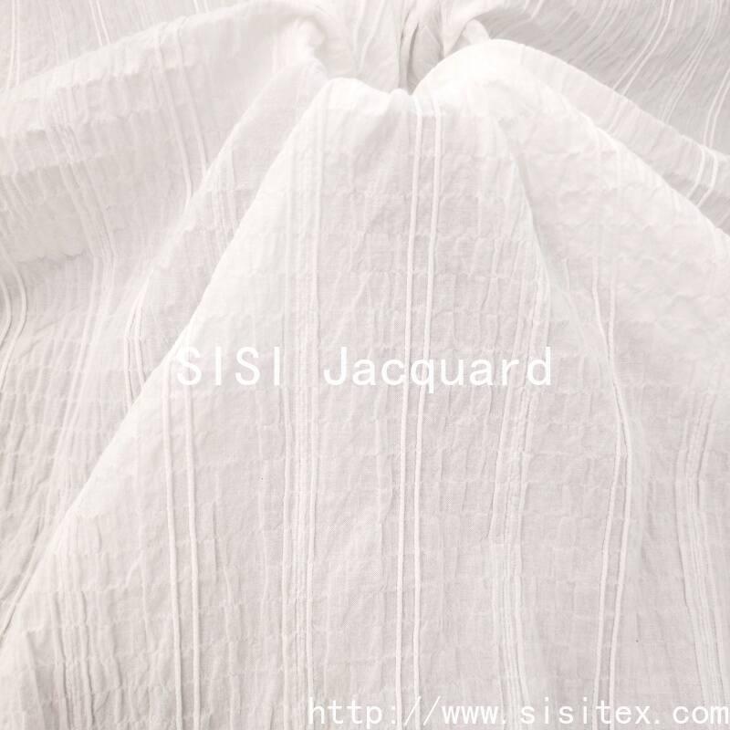 This woven cotton stretch fabric is made of 98% superior cotton and 2% spandex blend, which combines the natural skin affinity of cotton and the elastic resilience of spandex. The unique jacquard process combined with the three-dimensional texture stripe design creates a concave and convex bubble texture surface, which feels rich and clearly layered. The fabric weight is moderate, breathable and moisture-absorbent, suitable for all seasons, suitable for consumers who pursue texture and comfort.