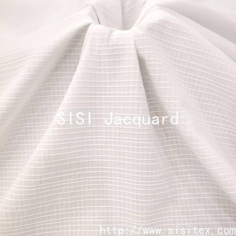 Made with high-end jacquard technology, SISI spring/summer cotton jacquard fabric features a delicate warp and weft interwoven texture, combining the softness of natural cotton with the exquisite aesthetics of jacquard technology. The surface of the fabric presents a faint mercerization texture, and the touch is light and breathable, which perfectly fits the double needs of comfort and fashion in spring and summer.