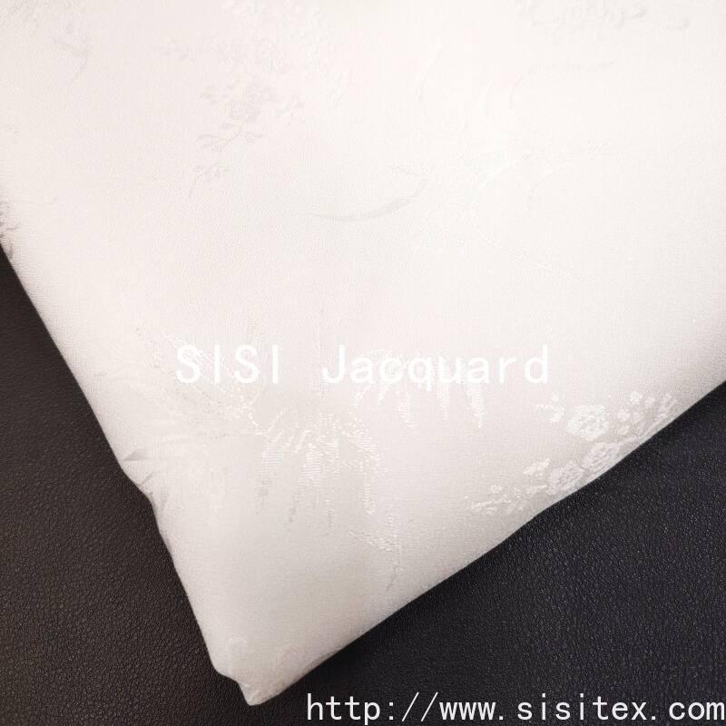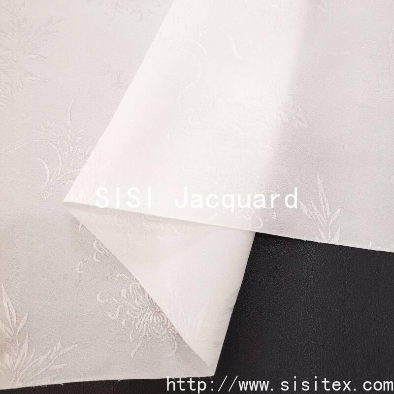 "Silk jacquard" fabric is presented by Shaoxing Silk Textile Co., LTD., selected 100% rayon (rayon) fine woven, the texture is smooth and smooth, and the touch is as delicate as silk satin. The fabric uses bamboo leaves and plum blossom dark jacquard as the design core, the texture is hidden, the classical poetry is revealed in the low-key, and the subtle beauty of the East is revealed in the flow of light and shadow.
