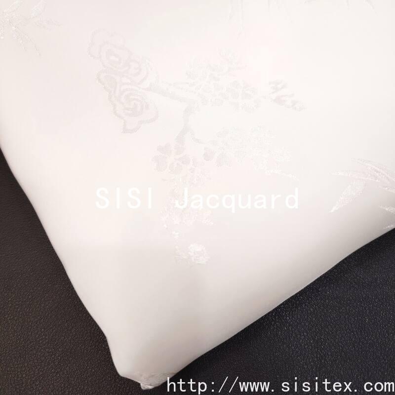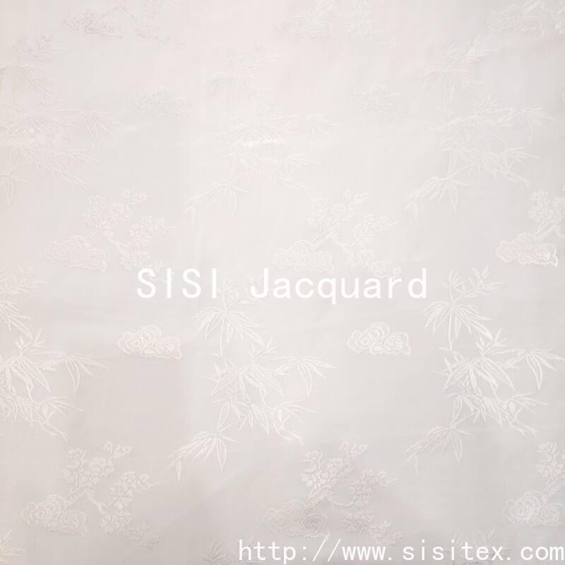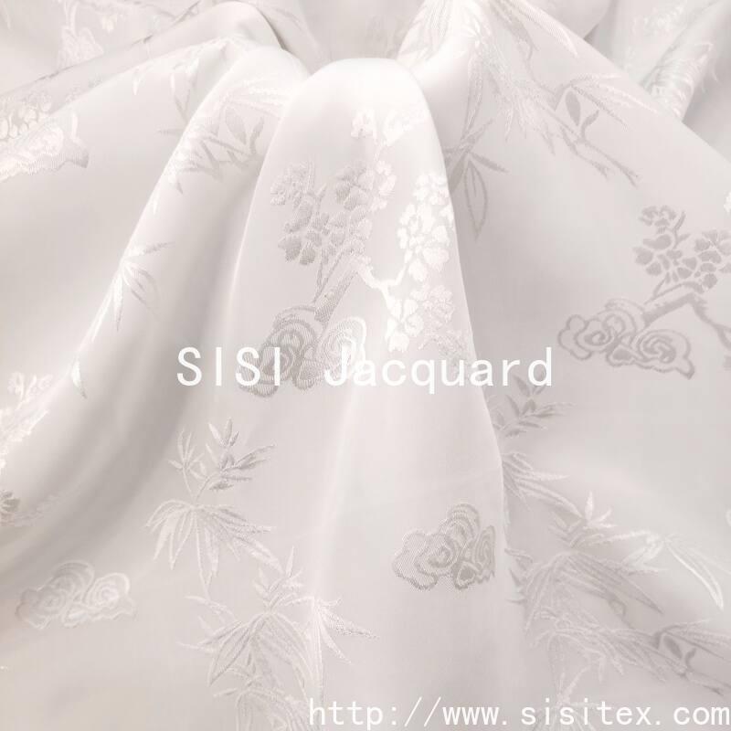 This "Yiyi jacquard" fabric is created by Shaoxing Silk Textile Co., LTD., with 100% rayon (rayon) fine woven, soft and light texture, with natural luster. The surface of the fabric adopts the Chinese bamboo leaf jacquard pattern, the pattern is smart and elegant, and the bamboo shadow shows the Oriental aesthetic charm.