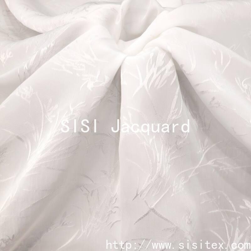 This "Silk Jacquard" fabric is exquisitely crafted from 100% Rayon. Inspired by early spring orchids, it is woven into delicate and three-dimensional plant patterns through traditional jacquard techniques. The fabric has a smooth and silky touch, is light and drape, and combines natural luster with breathability, perfectly meeting the demand for light and comfortable wearing in spring.