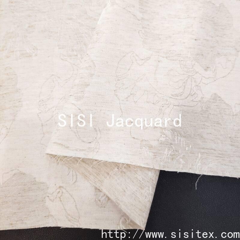 This jacquard fabric takes the classic peony pattern as its core design element and presents a three-dimensional relief-like exquisite pattern through exquisite jacquard craftsmanship. The fabric combines the luster and smoothness of rayon, the skin-friendliness and breathability of rayon, and the natural texture of linen, creating a light and smooth feel while also maintaining a natural and crisp silhouette. It is suitable for consumers who pursue the combination of high quality and artistic sense.