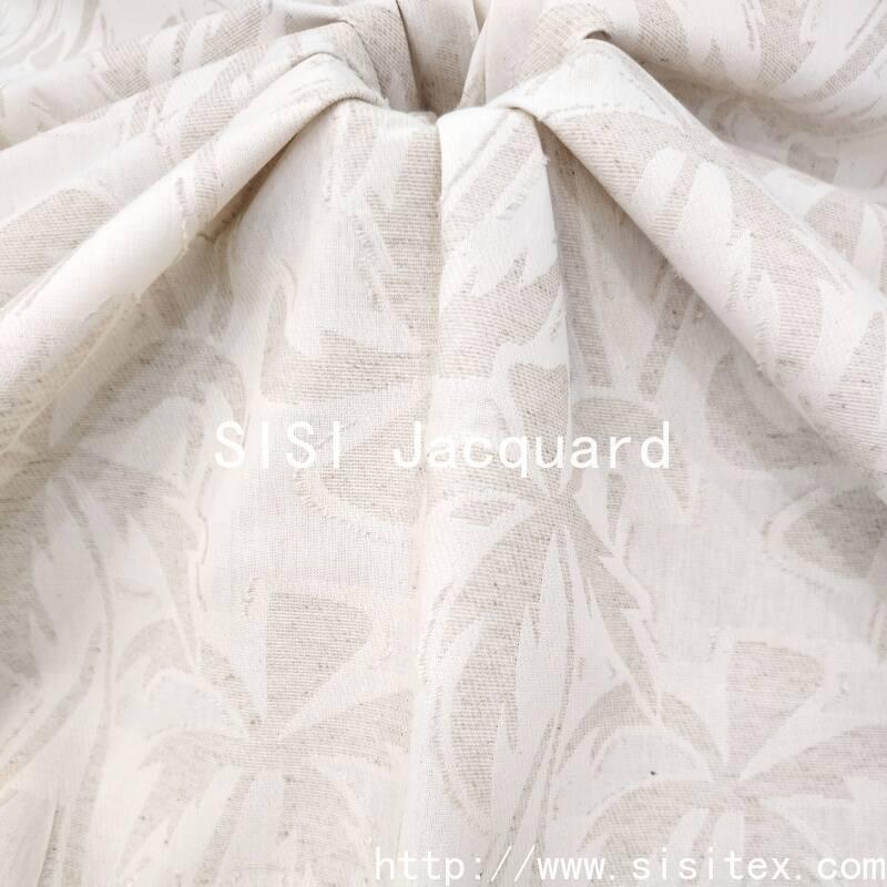 This woven cotton-linen coconut tree jacquard fabric (item No. : SS20383) is meticulously crafted by Shaoxing Sisi Textile Products Co., LTD. It is made of a natural blend of 68% cotton, 22% rayon and 10% linen, combined with exquisite jacquard techniques, presenting a tropical pattern of coconut trees everywhere. The fabric is soft and breathable in texture, with a three-dimensional and fine texture. It retains the skin-friendliness of cotton while integrating the natural texture of linen and the luster of human cotton. It is an ideal choice for creating high-end fashion items.