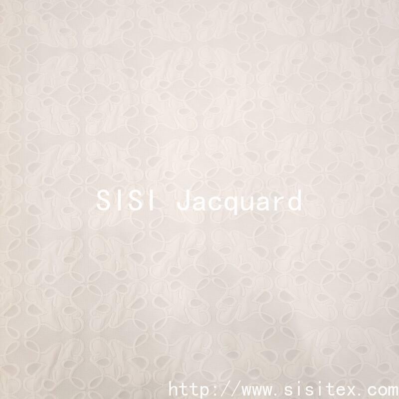 This product is a high-end woven jacquard fabric (item No. : SS20405), precisely woven from 100% high-quality polyester. It features a unique embossed texture created through three-dimensional jacquard technology, offering a rich and delicate touch. The surface presents a low-key matte texture and a faint luster flow, perfectly blending modern craftsmanship with traditional aesthetics. It is an ideal choice for creating items in a light luxury style.