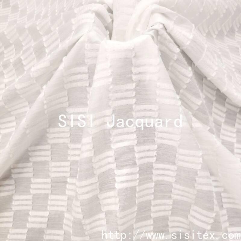 Explore the art of texture and light! This H25216 jacquard printed fabric is crafted through exquisite weaving techniques, creating a unique "pineapple leaf" three-dimensional texture. The fabric combines 84% viscose for its smooth drape, 9% nylon for its strong resilience, and 7% linen for its natural roughness, presenting a rich and sophisticated tactile experience.