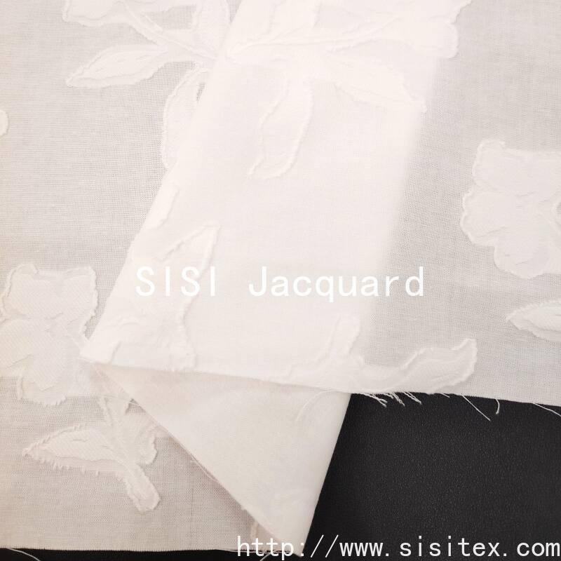 **H25219** is a high-end cotton fabric that combines traditional jacquard weaving technique with modern cutting techniques. It is made from 100% high-quality cotton, and through precise weaving, it presents a three-dimensional relief pattern. The flower design is lively and full, with a soft and skin-friendly texture. The fabric surface is created by the cutting technique to remove some of the raised lines, resulting in a light and dark interwoven relief effect. This gives the fabric a distinct artistic beauty with clear layers, while maintaining natural breathability and draping texture. It perfectly embodies "low-key luxury".