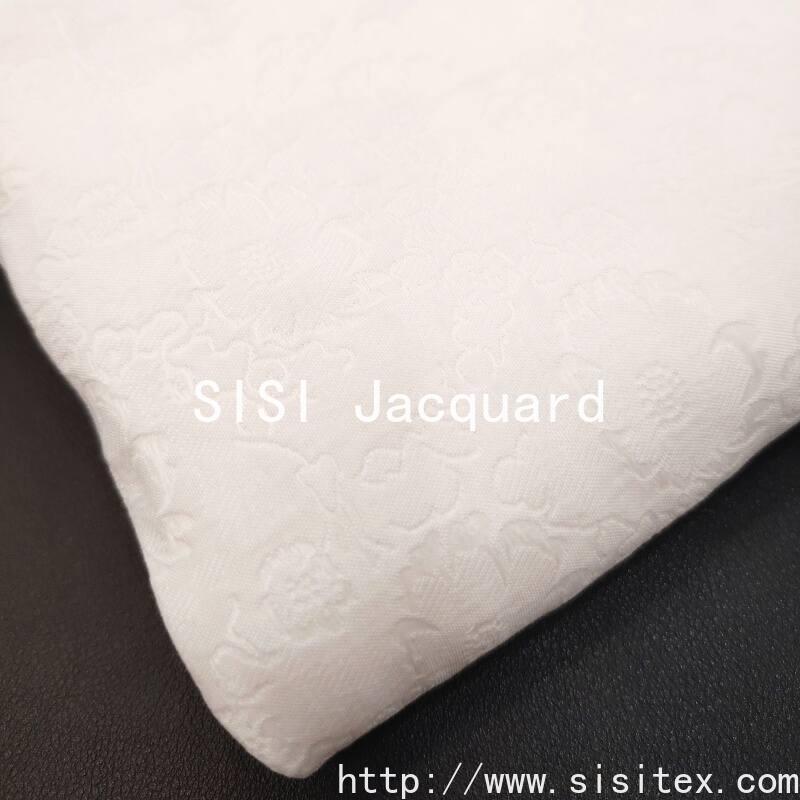 This woven flower relief jacquard fabric is made by combining 41% nylon, 41% cotton and 18% polyester yarns. Through a high-density weaving method and three-dimensional jacquard technology, it creates a flower texture that resembles a relief. The fabric has a density of 178×183 and a weight of 144g/㎡. It is tightly and thickly textured, with a soft and flexible touch. It combines the elasticity of nylon, the smoothness and draping of cotton, and the stiffness of polyester. The flower pattern is full and distinct in layers, resembling a relief art. The overall style is luxurious and exquisite, with a high-grade texture and feminine charm. It is suitable for creating formal dresses, high-end clothing, and light luxury home decorations.