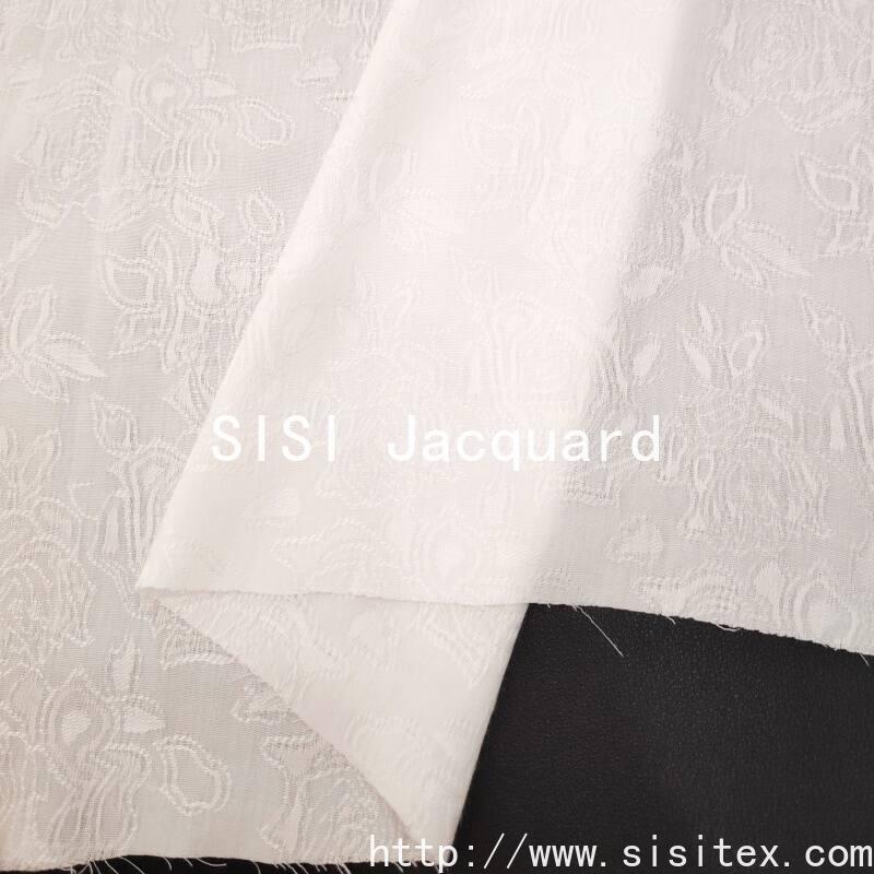 This cotton-polyester rose flower jacquard fabric is made of 100% cotton yarn. It features a delicate and three-dimensional rose pattern as the main theme. Through the jacquard weaving technique, it creates a romantic and exquisite plant texture. The fabric density is 106×81, with a soft and smooth texture. It combines the silky luster and excellent drape of cotton with the unique characteristics of cotton. The rose pattern is vivid and well-defined, gracefully unfolding on the base fabric. The overall style is romantic and gentle, with a feminine touch and modern artistic appeal. It is suitable for creating elegant and exquisite clothing and home items.