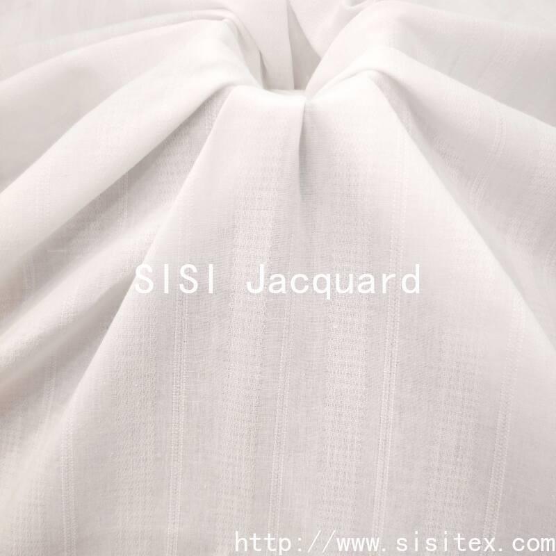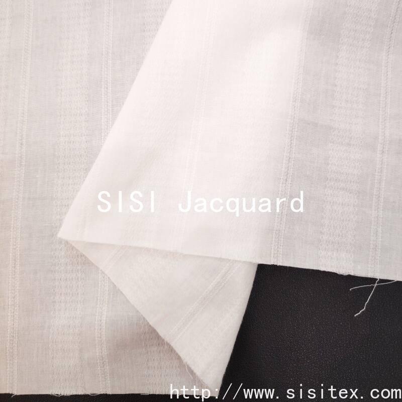 This cotton striped jacquard fabric is made of 100% high-quality cotton yarn. It combines vertical stripe weaving technique with jacquard weaving to create a delicate and three-dimensional concentric knot pattern and stripe texture. The fabric density is 100×68, with a weight of 109g/㎡. It is soft and elastic, combining the natural skin-friendly property of cotton with the longitudinal extension effect of the stripe fabric. The stripe base is clean and simple, with the concentric knot jacquard点缀 in between, adding details and design ingenuity. The overall style is simple and elegant, suitable for creating comfortable and stylish daily wear and home textiles.