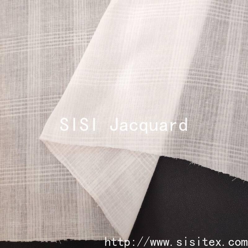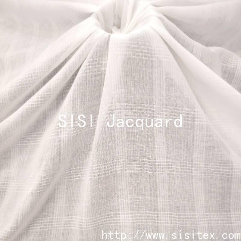 This all-cotton jacquard fabric is made from 100% high-quality cotton yarn. Through the jacquard weaving process, it creates a delicate interweaving pattern of lines and checks. The fabric has a loose structure (density 60×60), with a lightweight and soft texture, excellent breathability, and combines the natural skin-friendly properties of cotton with the classic texture of checkered fabrics. The interweaving of lines and checks forms a simple yet layered visual effect. The overall style is fresh and natural, featuring a minimalist aesthetic reminiscent of Japanese and Korean styles. It is suitable for creating light, breathable, comfortable and stylish clothing and home textiles for spring and summer.