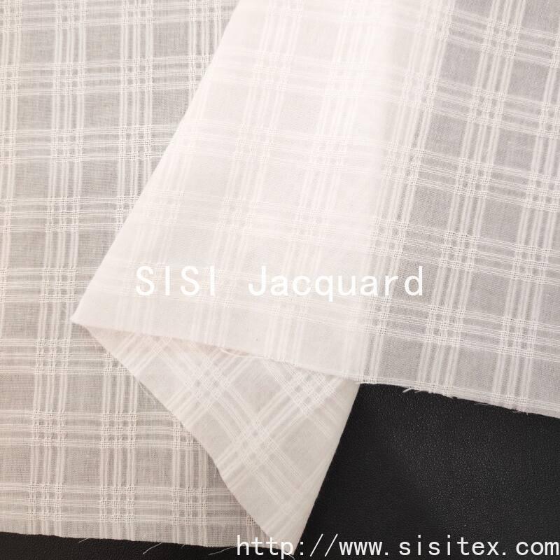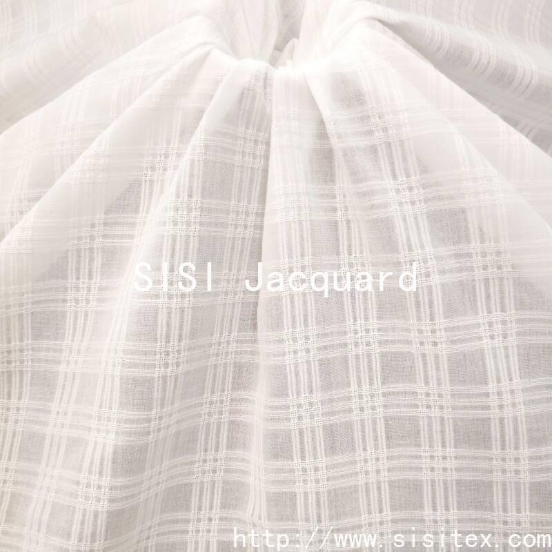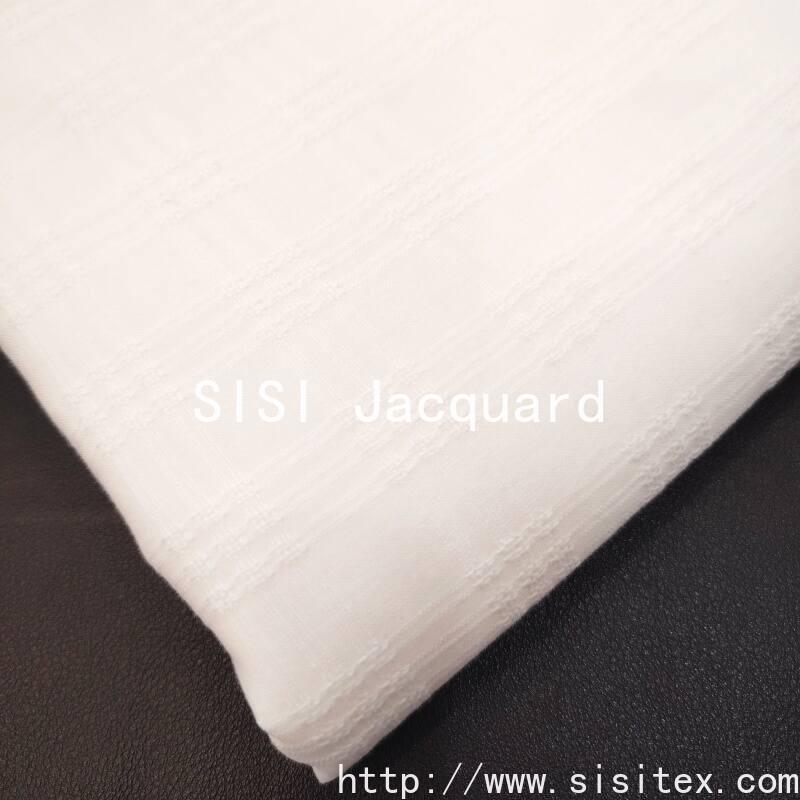 This all-cotton jacquard fabric with a pattern of piano strings is made from 100% high-quality cotton yarn. It combines the jacquard weaving technique with fine embroidery craftsmanship to create a delicate interwoven pattern and transparent texture like a piano string. The fabric has a density of 86×63 and a weight of 94g/㎡. It is lightweight and soft, combining the natural skin-friendly properties of cotton with the unique slightly wrinkled drape of the jacquard fabric. The pattern lines are fine and regular, like piano strings interlacing. The overall style is fresh and elegant, with structural beauty and breathability, suitable for creating light, breathable, comfortable and stylish clothing and home textiles for spring and summer.