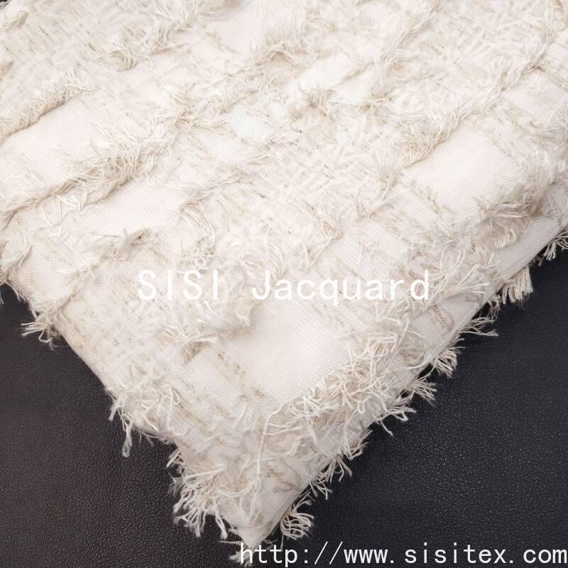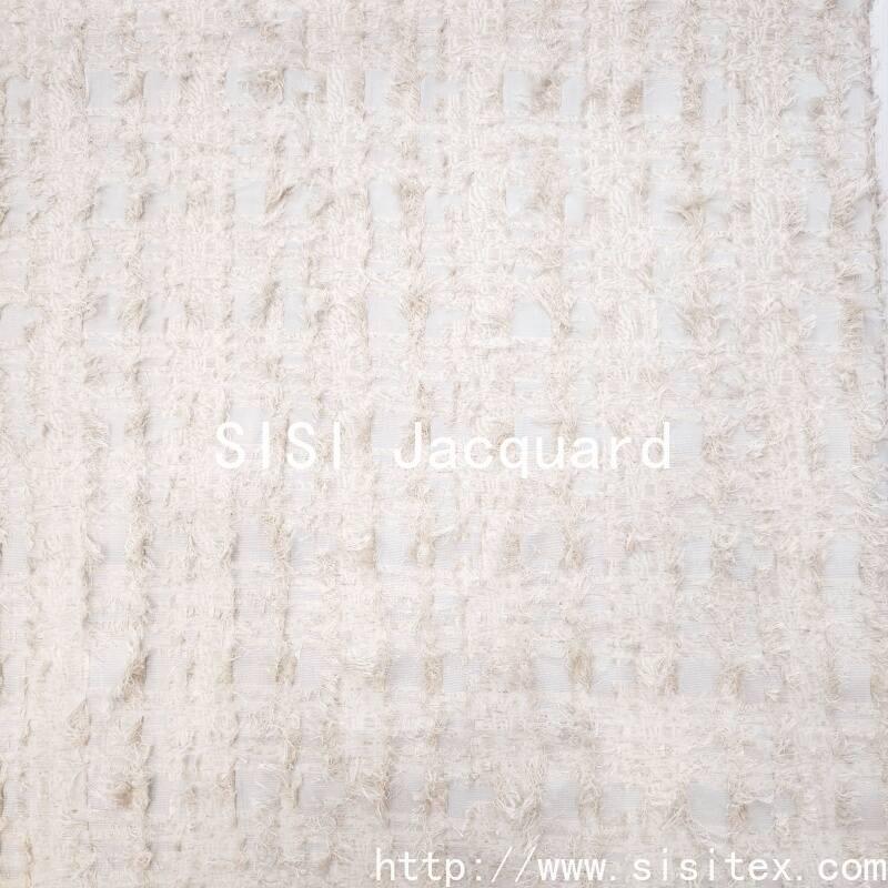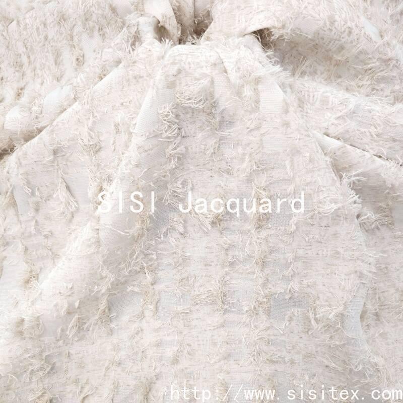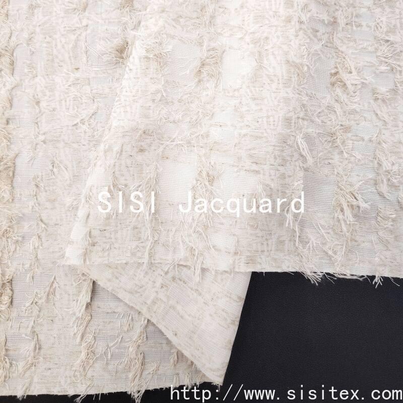 This fabric is made of a blend of natural fibers (63% cotton + 27% Tencel + 10% linen). Through jacquard and three-dimensional embroidery techniques, it creates a flowing and textured texture with an abstract artistic feel. The fabric weighs 199g per square meter and has a width of 145cm. It is thick and layered, combining the softness of cotton, the smooth luster of Tencel, and the natural texture of linen. It is suitable for creating design works with a sculptural and handmade touch.