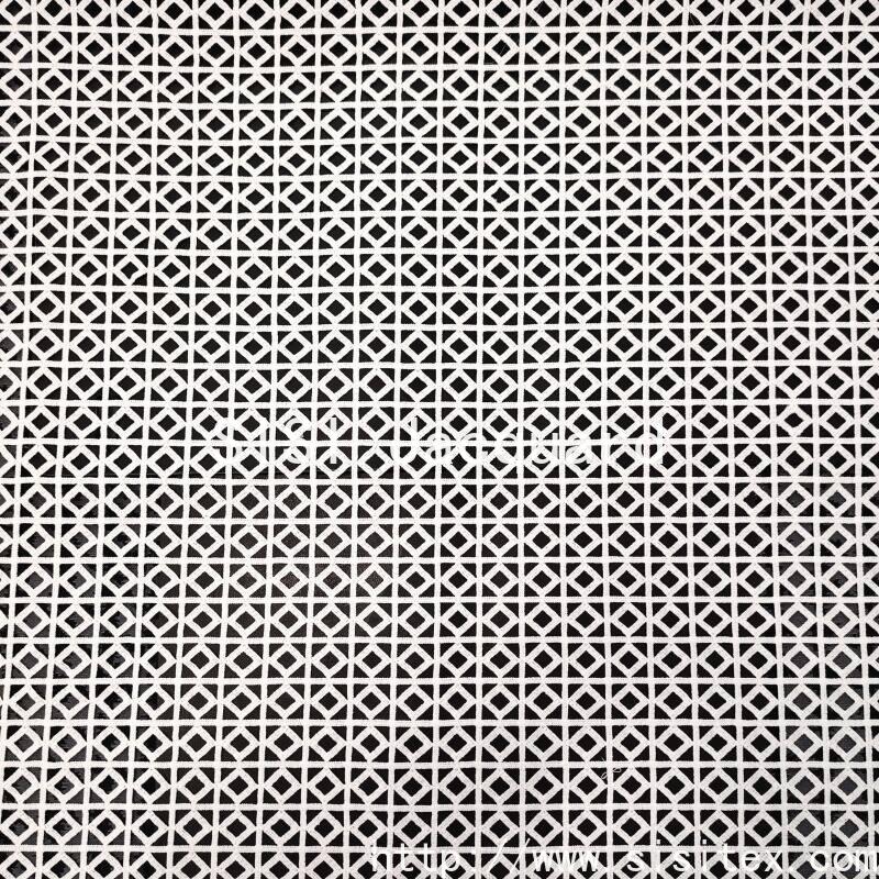 This fabric is made of 100% polyester milk silk base fabric, combined with water-soluble embroidery technique, to create a three-dimensional and transparent geometric pattern. The fabric width is 130cm. It has a smooth and soft texture with a delicate luster. The embroidered part is formed by water-soluble technology into clear hollow grid patterns, presenting a subtle and translucent effect. The overall style is simple and modern, combining soft elegance with practicality for daily wear. It is suitable for creating summer shirts, dresses, and elegant home accessories.
