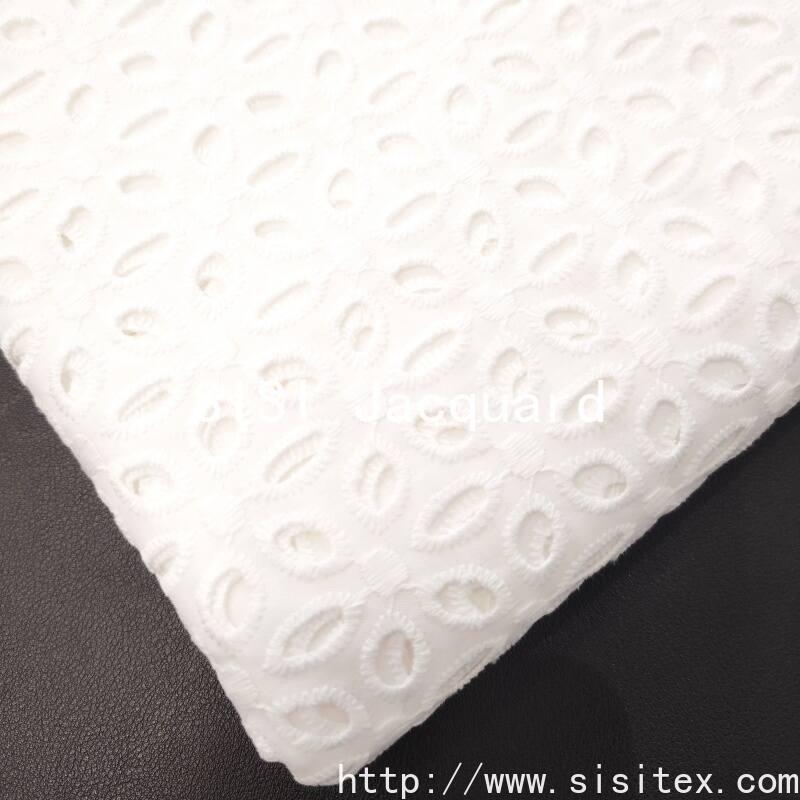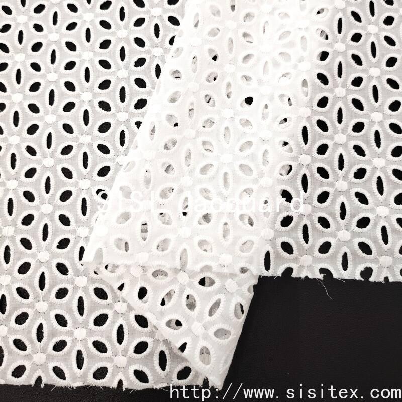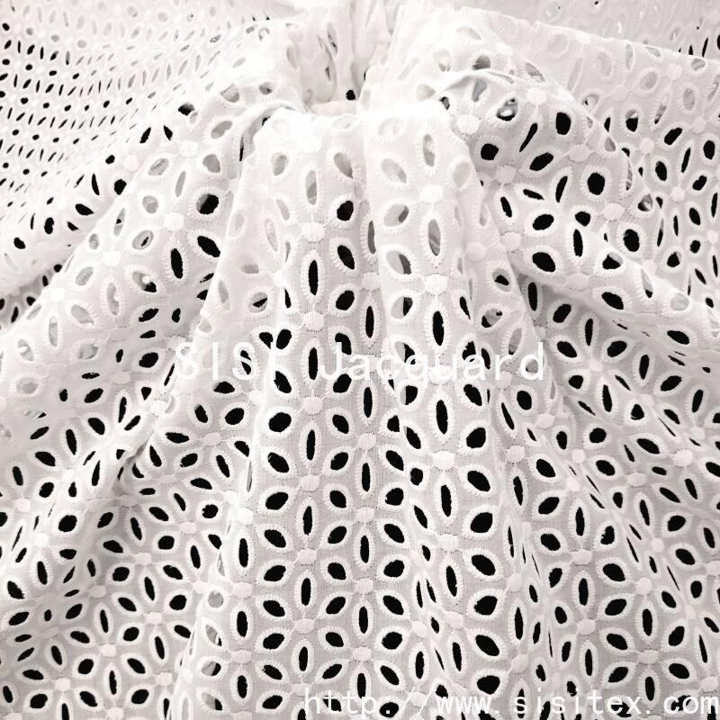 This product is a summer and spring style sheer embroidered cotton fabric. It is woven with high-count and fine-combed cotton yarn, combined with exquisite embroidery techniques. The fabric is transparent and lightweight, with fine textures. The geometric pattern design is modern yet classic, giving the clothing or home items a unique artistic quality.