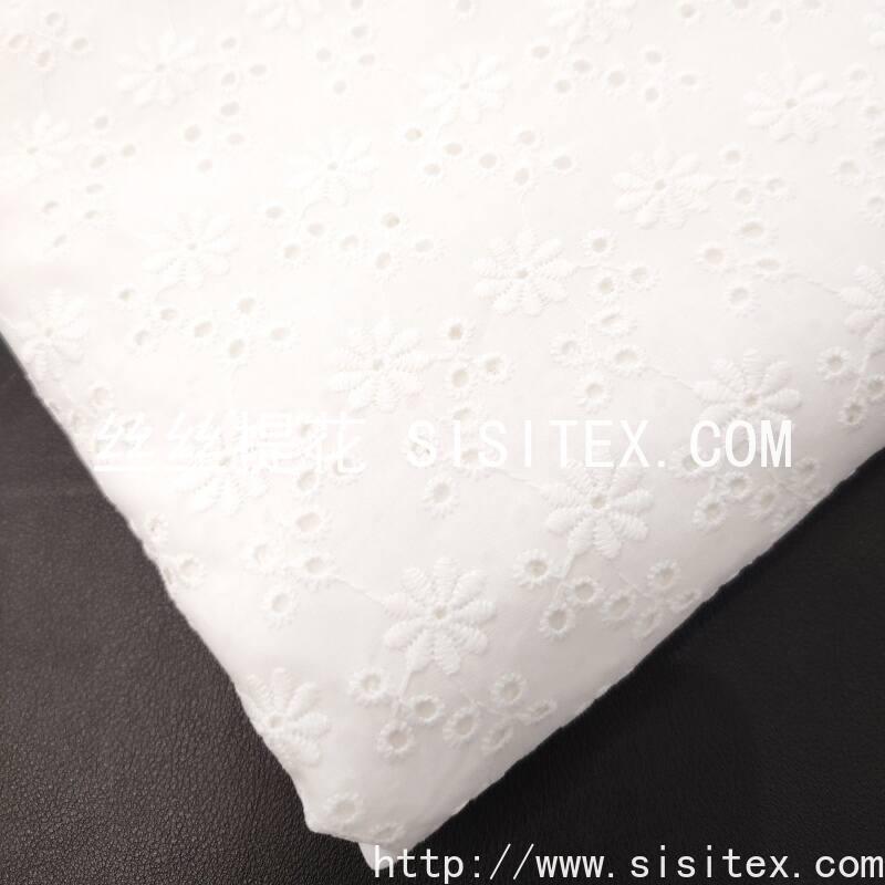 本款面料采用100%精梳棉(JC60×JC60)织造,通过精细镂空绣工艺,绣制出灿烂明媚的太阳花图案。绣花孔洞细腻有序,花型饱满生动,形成通透立体的透肌纹理,宛如阳光穿透花瓣。面料质地柔软亲肤,棉纤维带来优越的透气性与舒适度,整体风格活力清新,充满自然生机与手工艺温度,适合打造春夏连衣裙、衬衫及明媚家居饰品。